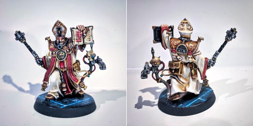 First up on the painting table was Taddeus the Purifier, and I was pretty excited to paint this one. Taddeus only narrowly missed the cut for my first four Explorers – and I’ve got a real thing for both painting cream robes and Priests of the Ecclesiarchy.