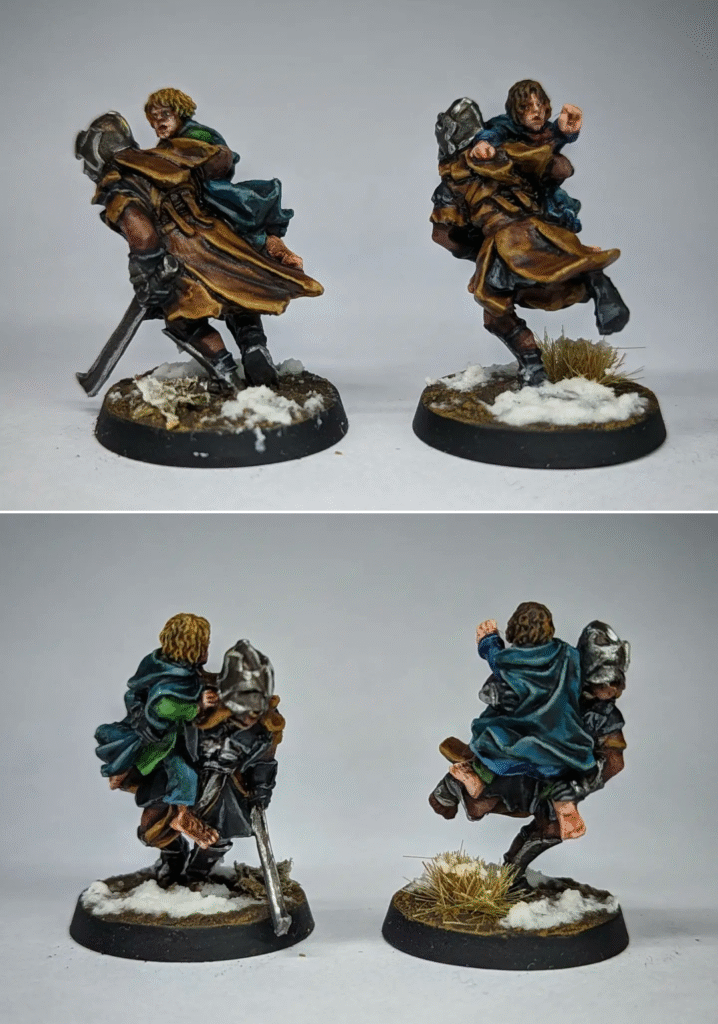 One thing I will say for these models however is that the Pippin’s hands are absolutely atrocious. Whether this is due to the source model or the pewter casting process I can’t say, but they’re stubby, chubby little blobs and I hate them with a passion. I’m reasonably pleased with how the faces turned out, for the most part – although Pippins eyes do look a touch intense. These are tiny little models with not the best definition to them, so I did what I could to the best of my ability.