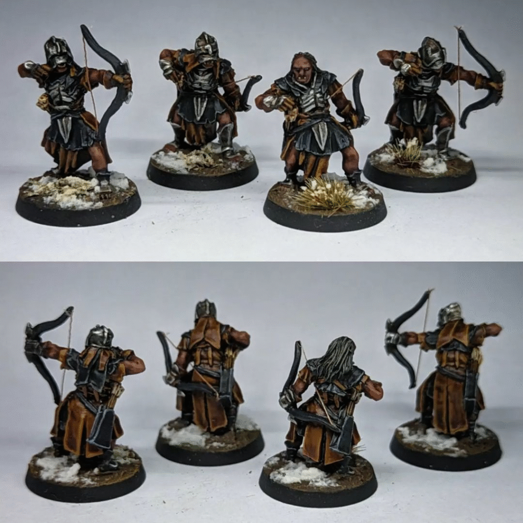 With Ugluk, Mauhur, an Uruk Captain, two banners, Snaga and Grishnakh, I was just a little touch low on points for the army. I could’ve added another Orc Captain or something, but I decided that the 8 Uruk Hai bows that I had from the plastic Scouts kit was maybe a little bit on the low side as far as shooting was concerned. And when else was I going to be motivated to start paint some more of these metal Uruk Scout models if not now, eh?