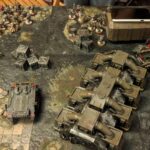 One of the benefits of being an intentionally “sloppy” painter though is that you can do a lot at the paint and weathering stages to really hide a lot of your minor issues. I’d pinned and filled some fairly noticeable gaps during construction – mostly on the underside of those front wheel stabilizers I forgot about earlier, as well as in places where the wheels meet. However, I’d already established a theme with my armour for my Vlka Fenryka – on all my resin tanks, at least, after painting and sealing the model with Testor’s Dullcote, I’d slob various areas of the tanks treads with Stirland Mud on the tank treads, up the side of the hull and around the mouths of the tread guards on the sides of the tank. Once that dried, I’d add spots of Valhallan Blizzard, and then seal the whole thing down again to prevent them from falling off. In this particular tanks case, I thought the size called for a slightly more economic option for the mud, so I opted for Vallejo European Mud. It’s a lighter in tone than Stirland, so I applied a thick coat of Euro Mud and then mixed a little Stirland into the mix to give it a little more variation in tone – handy for the bigger surface areas!